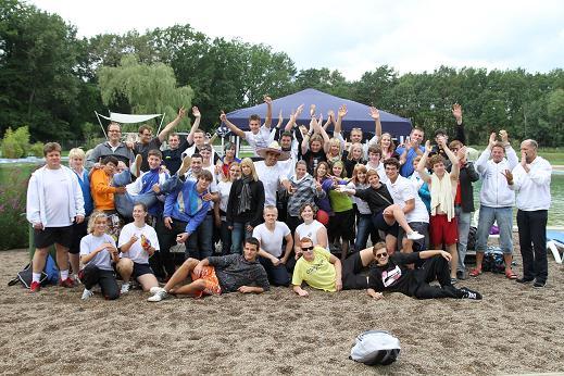Die Stationen dieses Jahr hießen: Grasski bzw. Sommerski, Teppichspringen, Pedalo Staffel, Team Kran, das laufende A und Cola Kisten Transport.