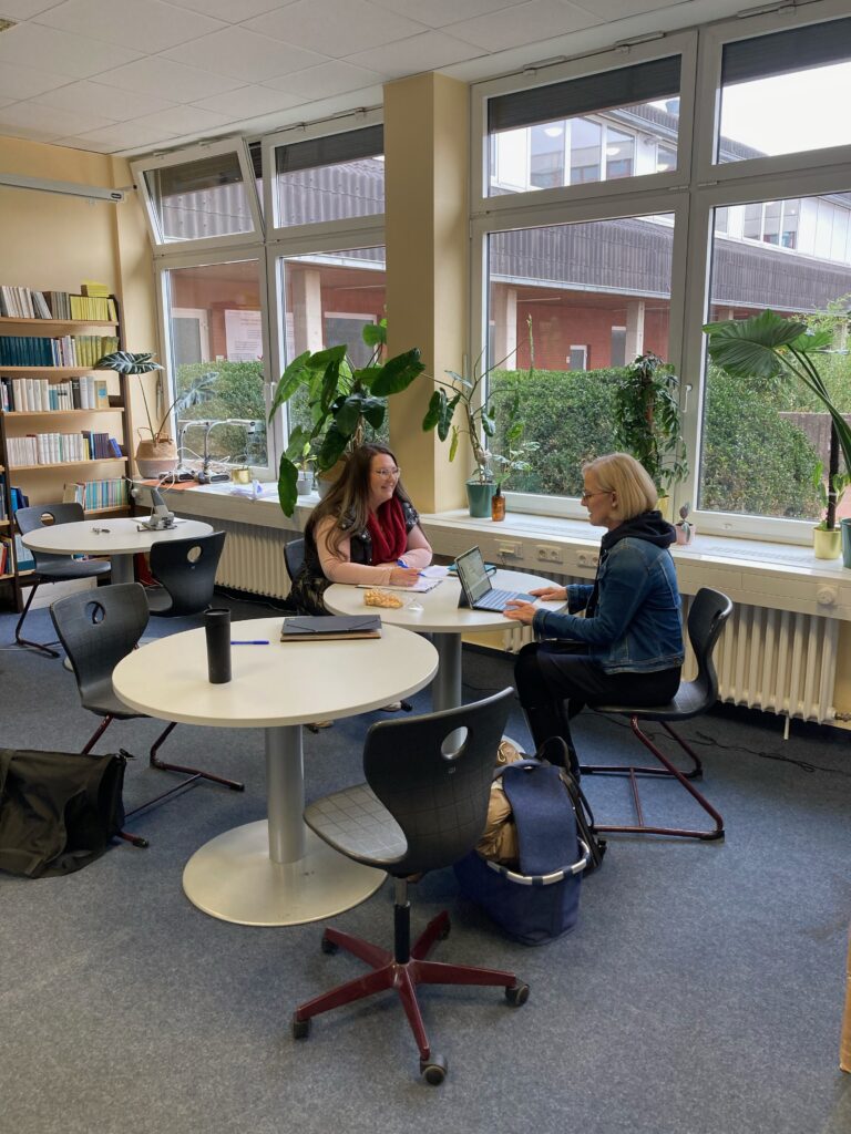 Die Mediothek am KIVINAN befindet sich zwar noch im Aufbau, soll jedoch mehr als nur eine Schulbücherei sein und werden sowie besonders individuelle Lernwege unterstützen. Sie ergänzt durch ein Angebot an entsprechenden Lernsettings den klassischen Unterrichts- oder Fachraum. Lernende und Lehrende finden hier verschiedene Medien, Computerarbeitsplätze und Plätze für das Arbeiten allein oder in Gruppen. Auch eine gemütliche Sitzecke, wo man nicht nur arbeiten kann, sondern auch einfach einmal in Ruhe Gespräche führen kann, ist in Planung. Unsere vormittags (Di., Mi., Do. und Fr. von 07:30 bis 12:30 Uhr) anwesende Mediotheksmitarbeiterin Frau Ljapicev unterstützt Euch und Sie gerne dabei, benötigte Medien zu finden und auszuleihen oder einfach beim Ausdrucken von Dateien oder anderen benötigten Unterlagen.