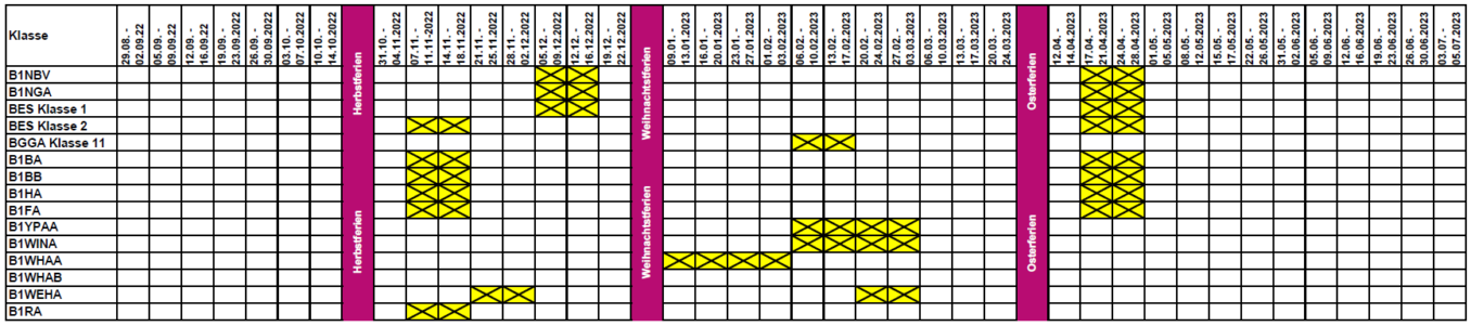 Praktikumszeiten der Vollzeitklassen im Schuljahr 2022/2023